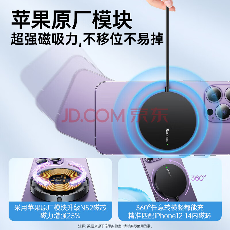 商品相册:倍思苹果无线充电器iPhone17ProMax支持Magsafe磁吸快充 适用苹果17/16/15华为手机AirPods耳机 白第