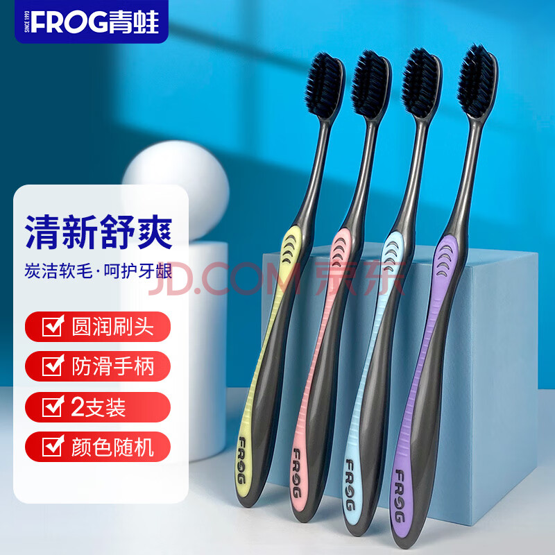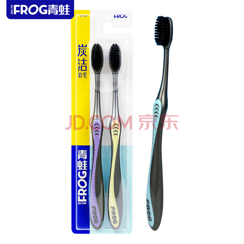 商品相册:青蛙(FROG)柔护系列178B成人牙刷2支装 炭丝软毛深入洁齿舒适刷头第