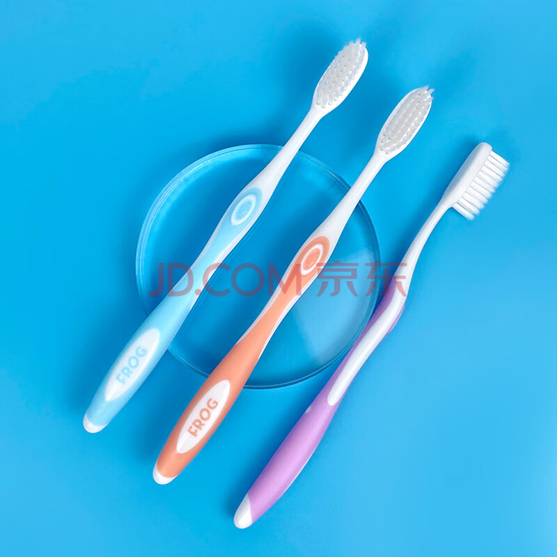 商品相册:青蛙(FROG)成人软毛牙刷3支 柔丝软毛养龈深洁(颜色随机)第