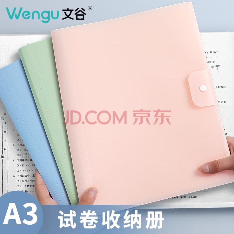 商品相册:文谷(Wengu)资料册 A3/60页插页试卷收纳册大容量学生科目收纳袋折叠简约透明试卷夹文件夹 MA3024-60浅豆绿第
