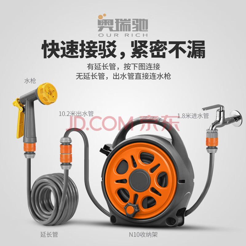商品相册:奥瑞驰洗车水管收纳浇花家用高压便携庭院冲洗花洒 H7合金水枪+10米N12第