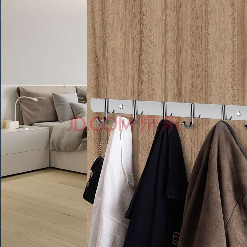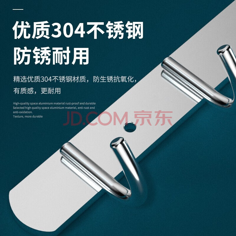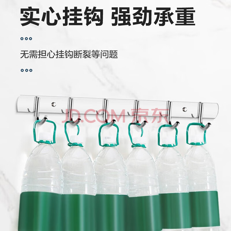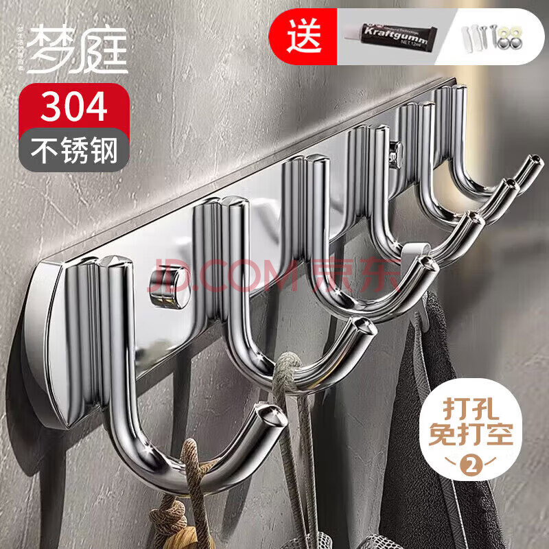 商品相册:梦庭挂钩免打孔304不锈钢挂钩贴 挂衣服挂钩粘钩浴室卫生间排钩 6钩第