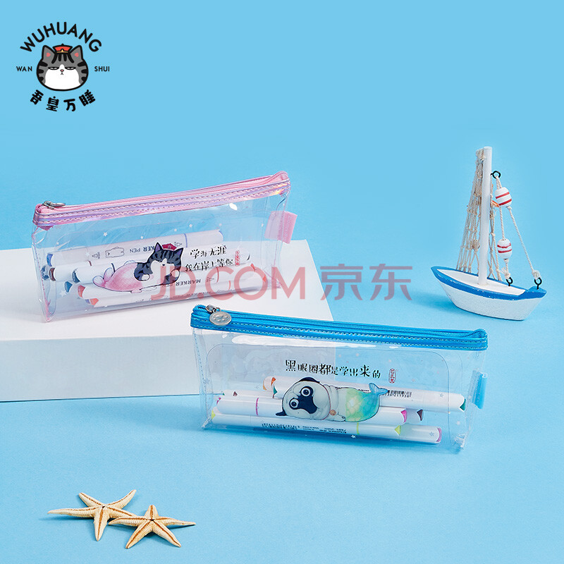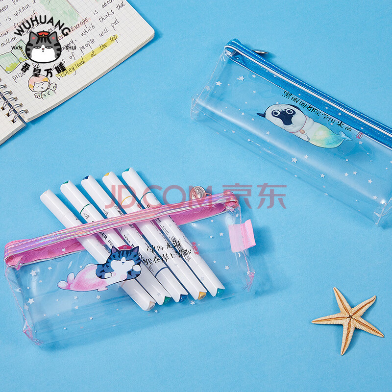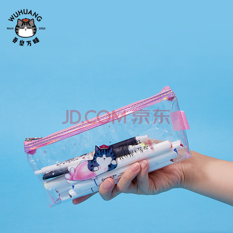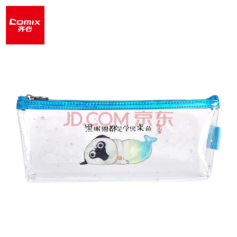 商品相册:齐心(Comix)吾皇万睡 小学生笔袋 透明笔袋大容量文具盒 轻盈防水 单个装WHA3201第