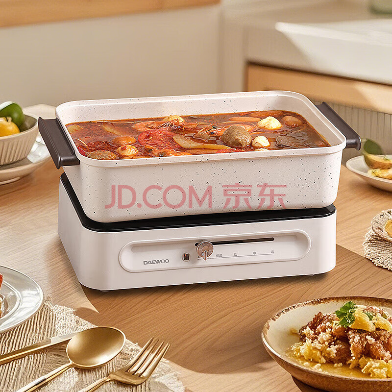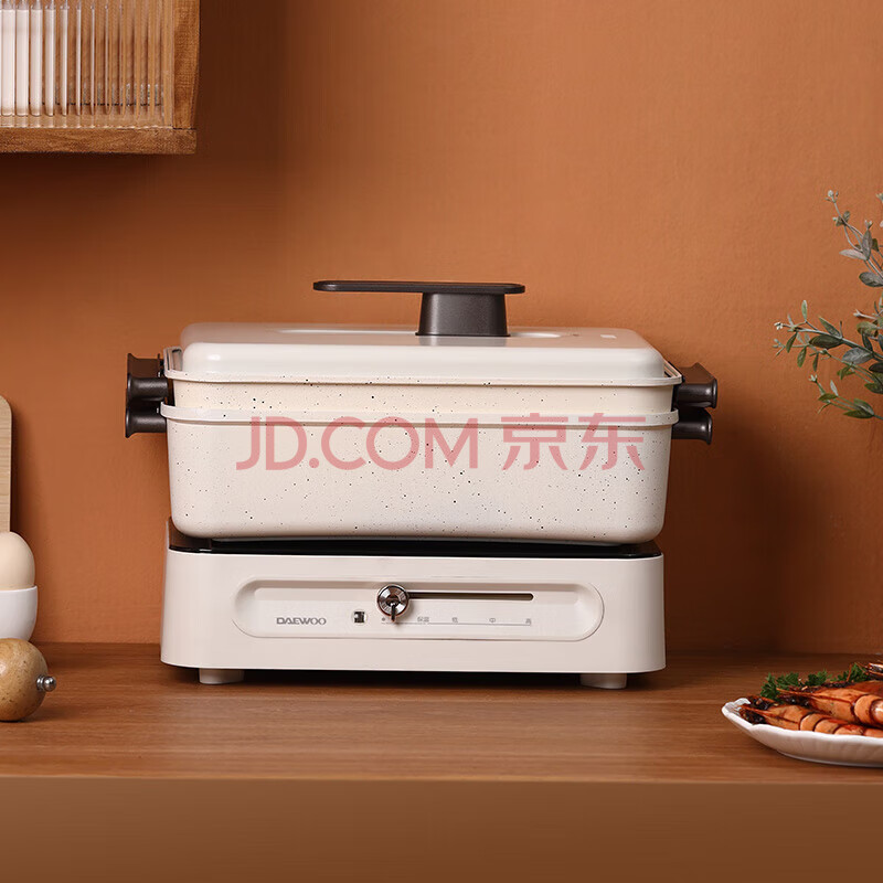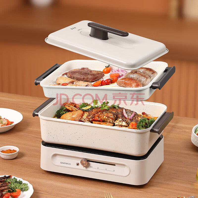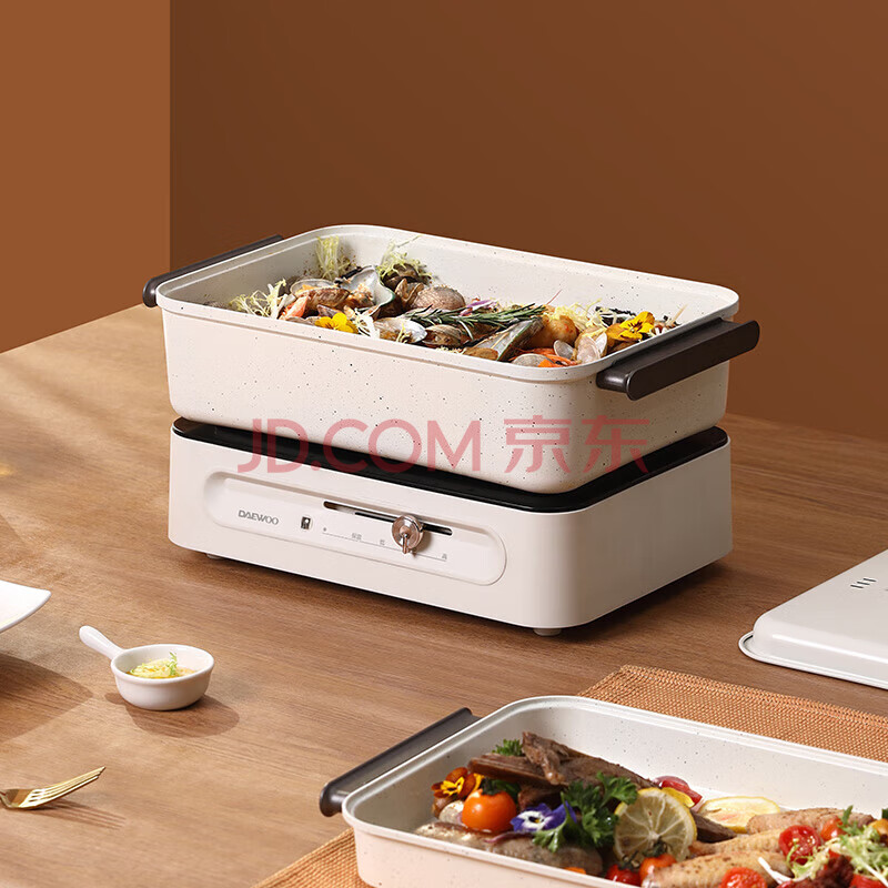 商品相册:大宇(DAEWOO)5L电火锅 0氟陶瓷油涂层 【深锅+煎盘】4档调温 多功能电煮锅 烤鱼锅烤涮一体料理锅 DYZG-451第