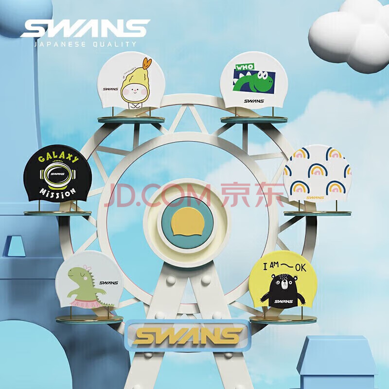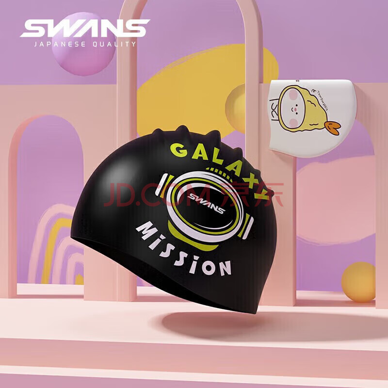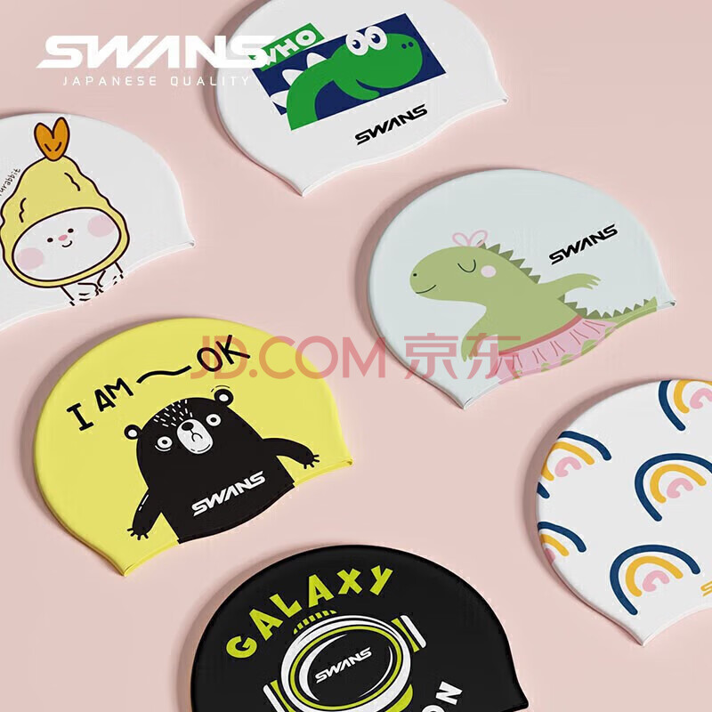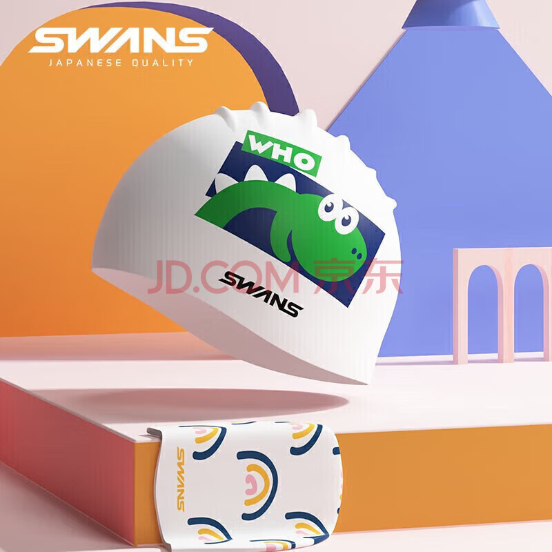 商品相册:SWANS儿童泳帽游泳帽硅胶柔软舒适不勒头加大印花宝宝防水温泉游泳帽SPMC124-2小恐龙第