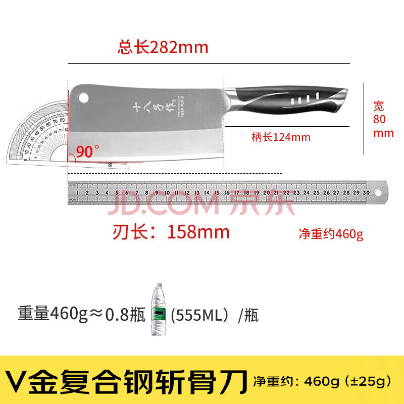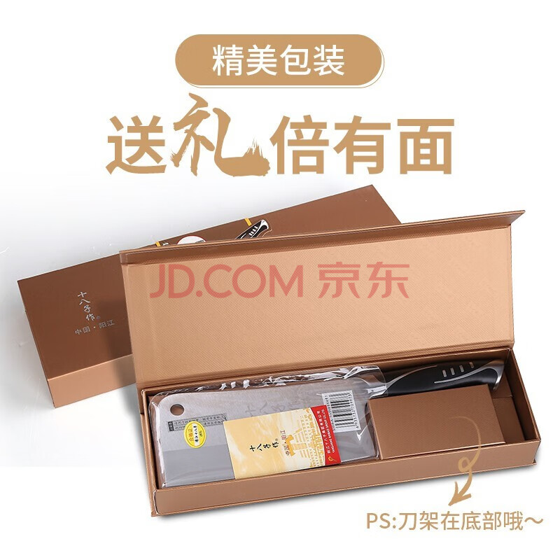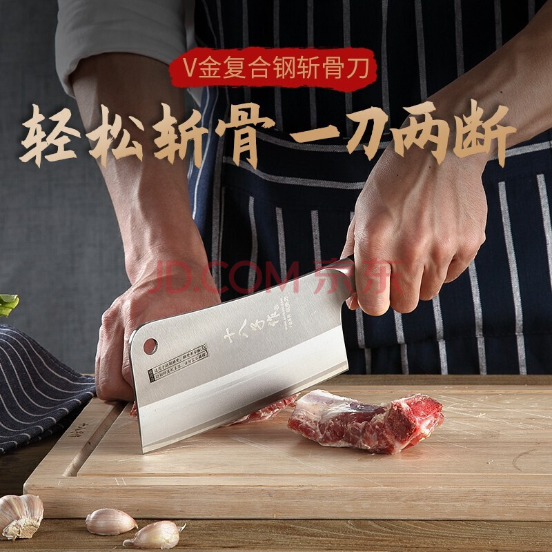 商品相册:十八子作V金复合钢家用刀具菜刀砍骨刀S1016-A【精美礼盒+专属刀架】第