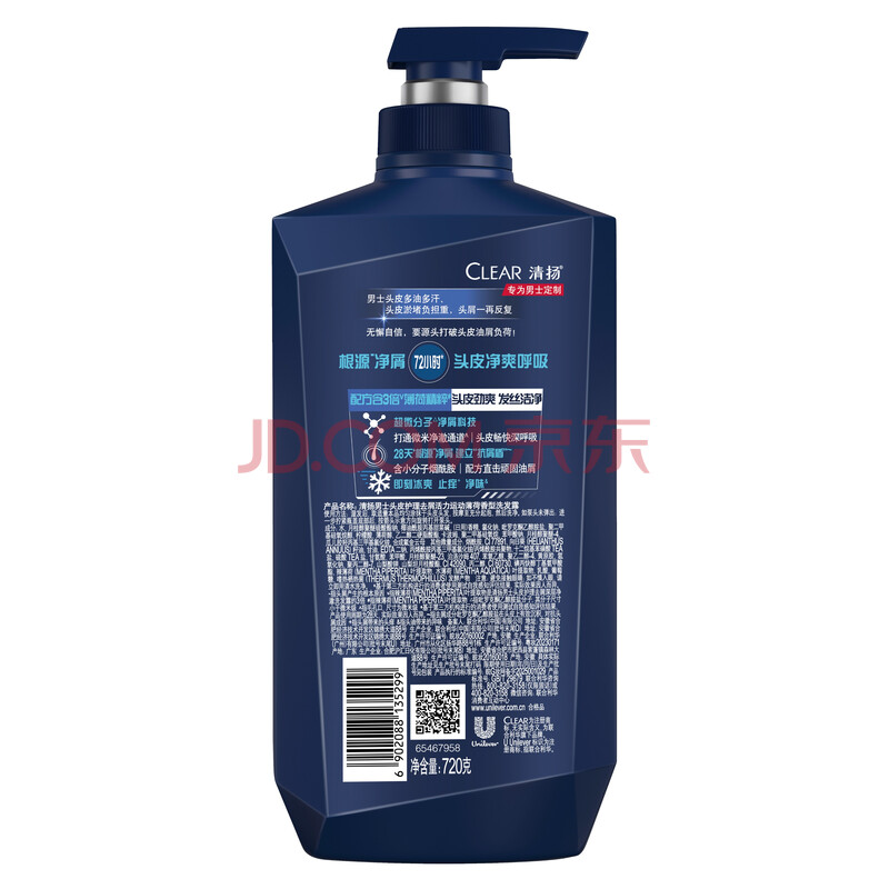 商品相册:清扬男士去屑洗发水 活力运动720g 薄荷止痒洗头膏京东自营金榜第1第