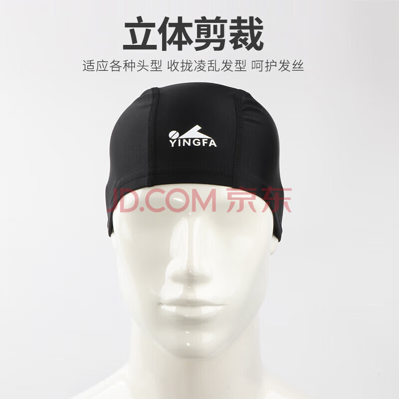 商品相册:英发(YINGFA) 泳帽 布艺游泳帽成人专业不勒头氨纶锦纶游泳布帽 黑色第