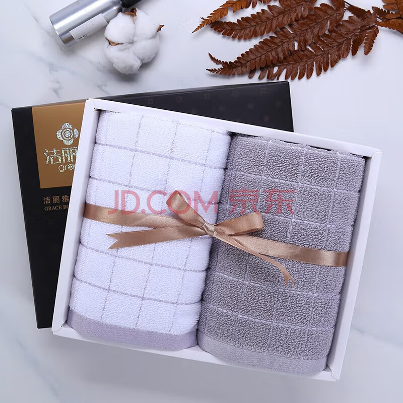 商品相册:洁丽雅毛巾礼盒2条套装 棉新疆A类棉素色毛巾颜色随机发货 6689-1第
