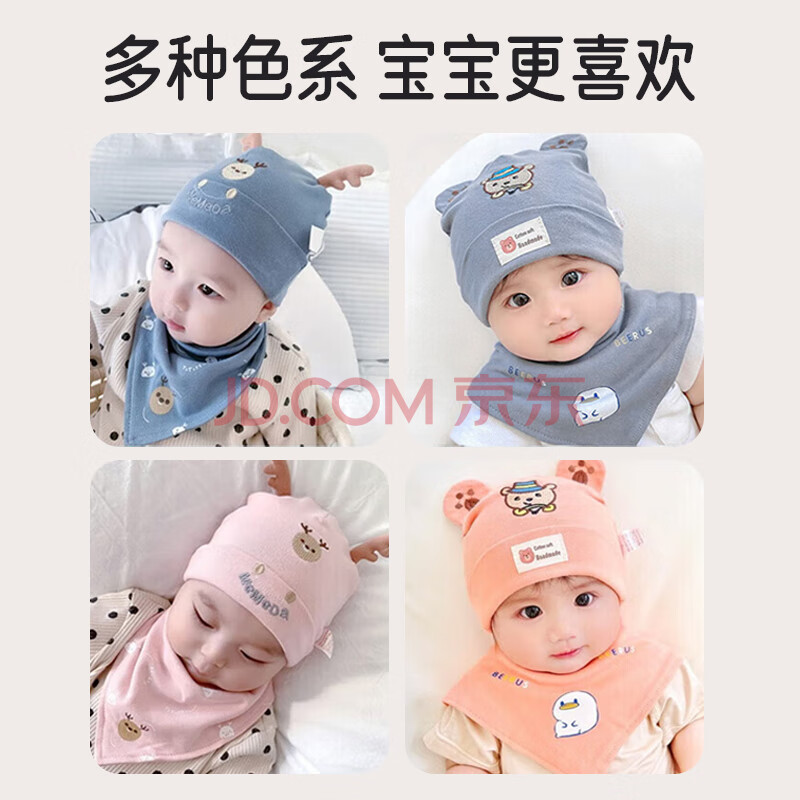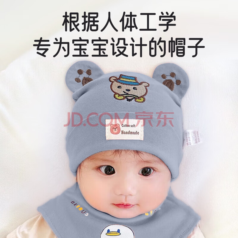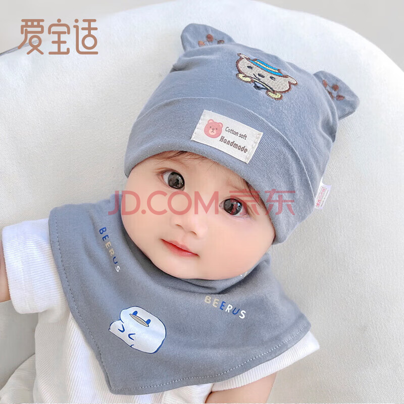 商品相册:爱宝适婴儿帽子春秋纯棉口水巾新生儿胎帽围嘴宝宝囟门帽2件套 S251蓝色第
