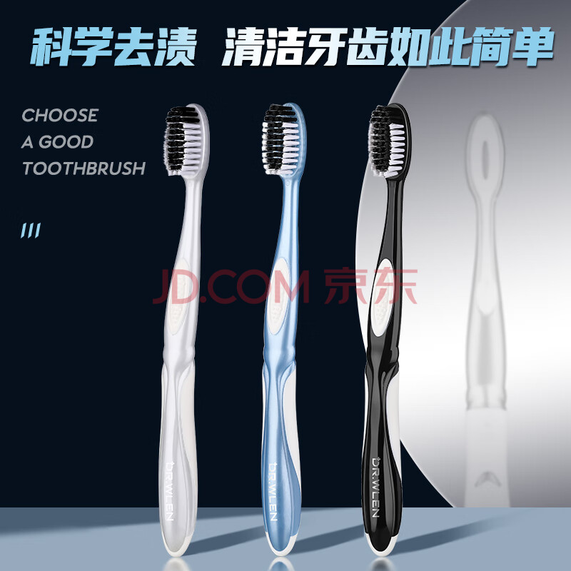 商品相册:Dr.wlen中硬毛牙刷成人宽头大头男士3支独立装去牙渍清洁烟渍茶渍口腔第