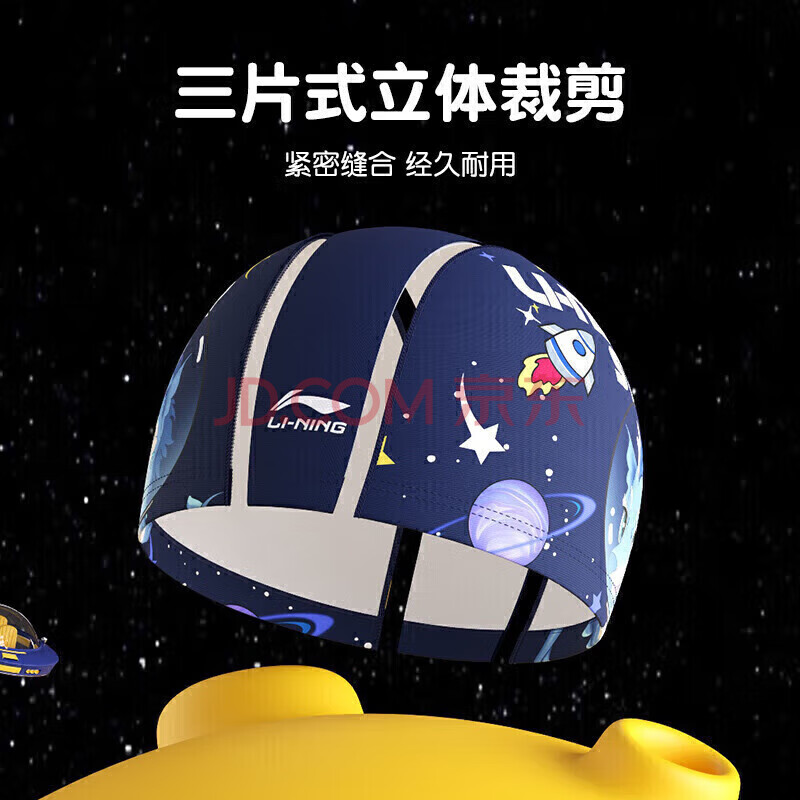 商品相册:李宁(LI-NING)儿童泳帽男女童柔软舒适可爱游泳帽卡通印花布帽6161航海蓝第