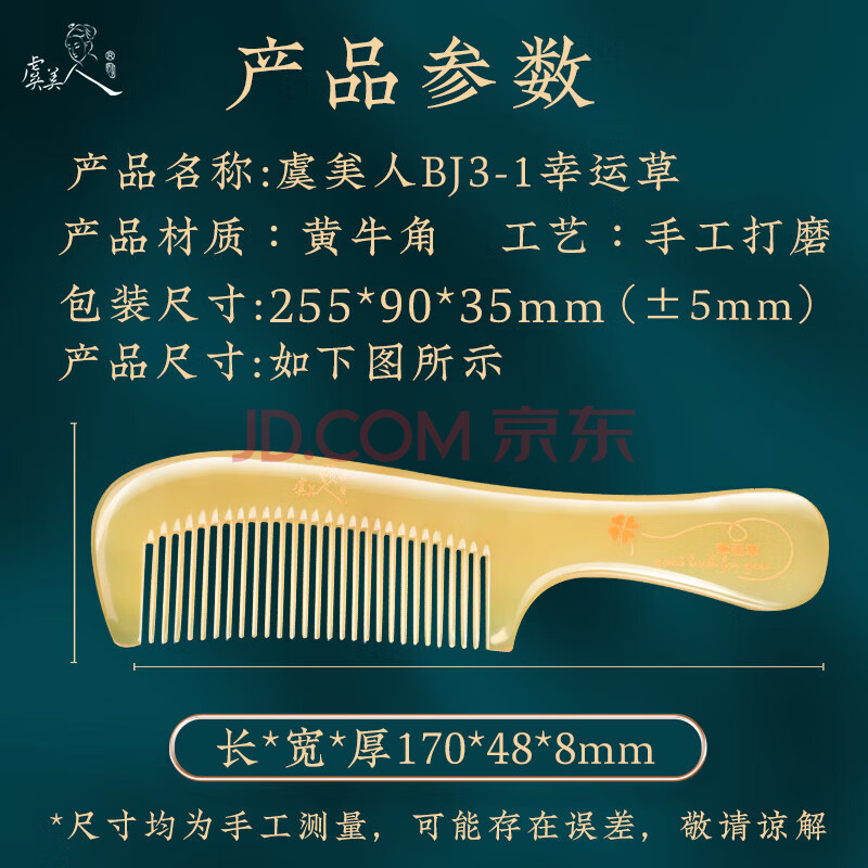 商品相册:虞美人梳子牛角梳礼盒梳子女生日礼物BJ3-1幸运草款第