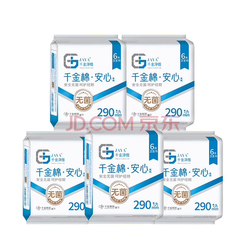 商品相册:千金净雅安心纯棉透气夜用组合卫生巾290mm*6片*5包30片京东自营消毒级第
