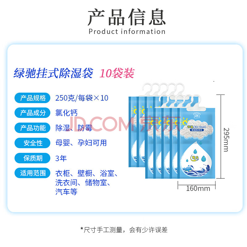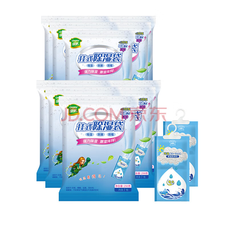 商品相册:绿驰10袋可挂式除湿衣柜防霉潮干燥剂生石灰桶硅胶盒回南天抽水吸湿包第