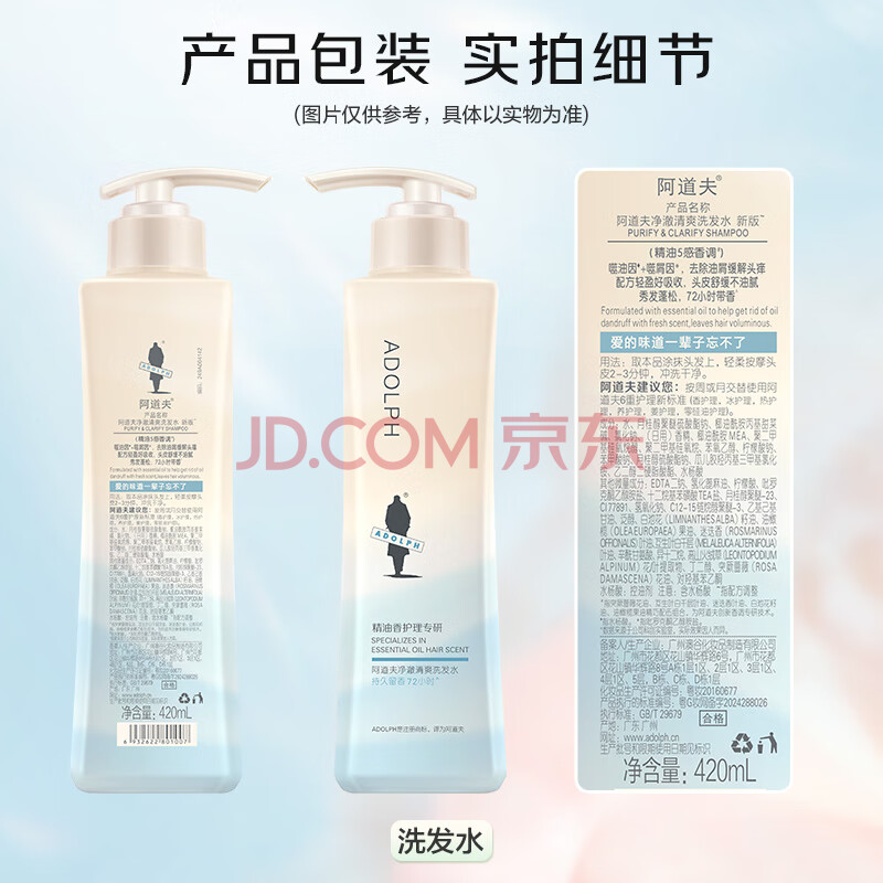 商品相册:阿道夫净澈清爽洗发水420ml 控油蓬松 精油香氛洗发露官方正品第