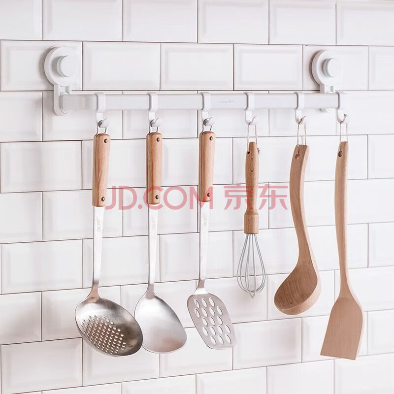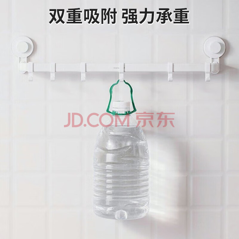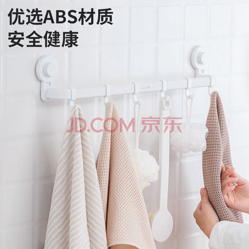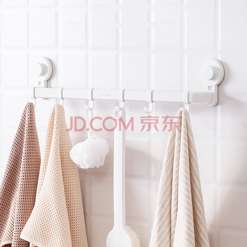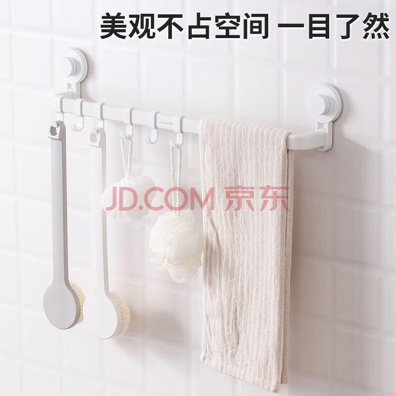 商品相册:茶花 挂钩毛巾架 浴室置物架免打孔卫生间收纳浴巾杆 白色 1只装第