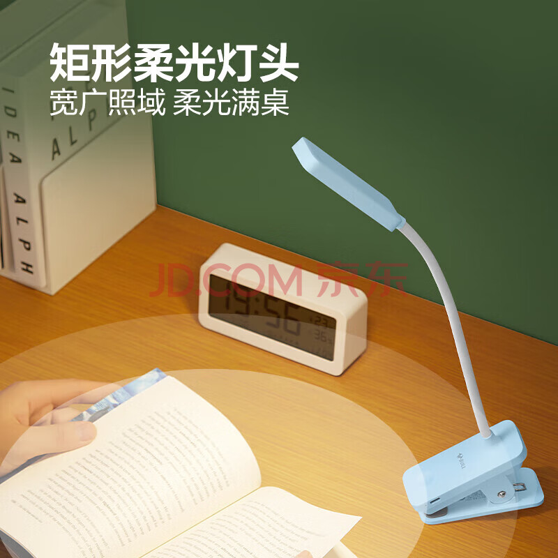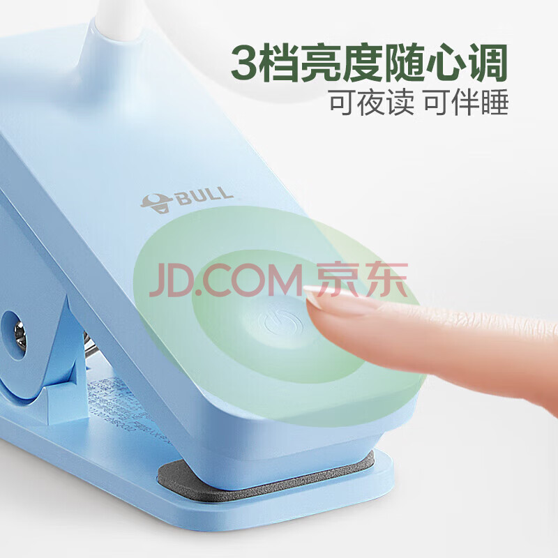 商品相册:公牛(BULL)台灯ML-D004B-FD充插两用家用床头宿舍LED夹子台灯3档亮度蓝色第
