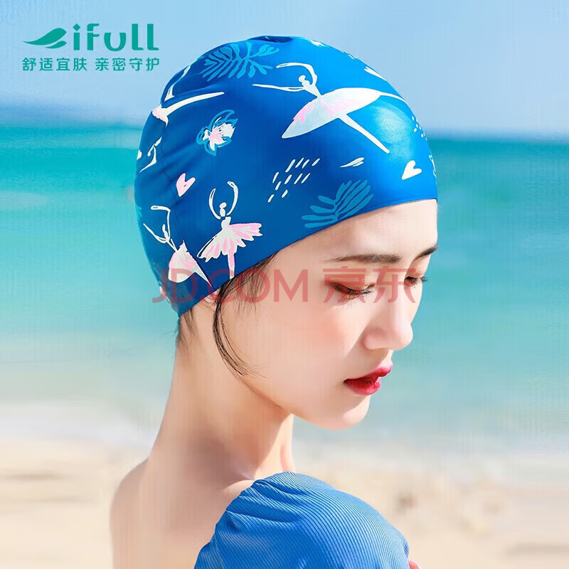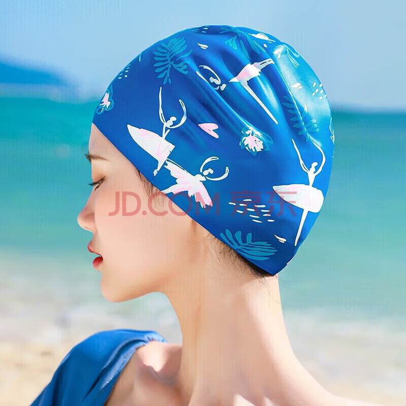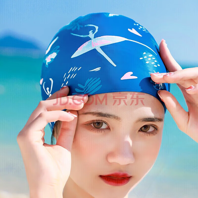 商品相册:宜肤硅胶泳帽 女长发护耳可爱卡通跳舞女孩印花游泳帽 防水不勒头泳帽 蓝色第