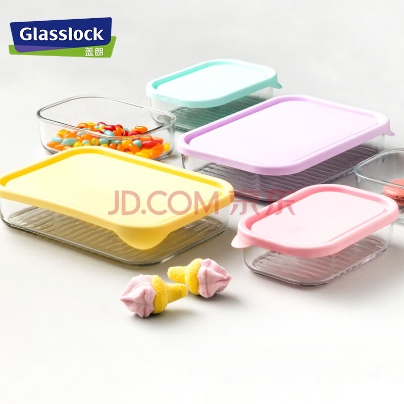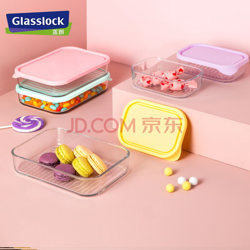 商品相册:Glasslock进口保鲜盒冰箱冷冻盒食物收纳盒带饭可微波炉饭盒480ml*4件套 第1张/共4