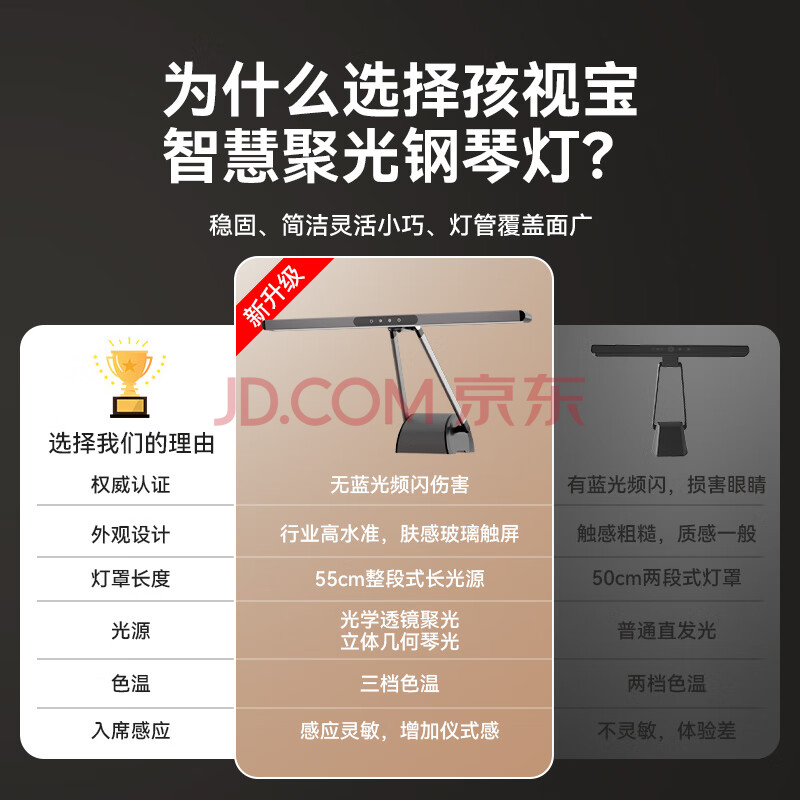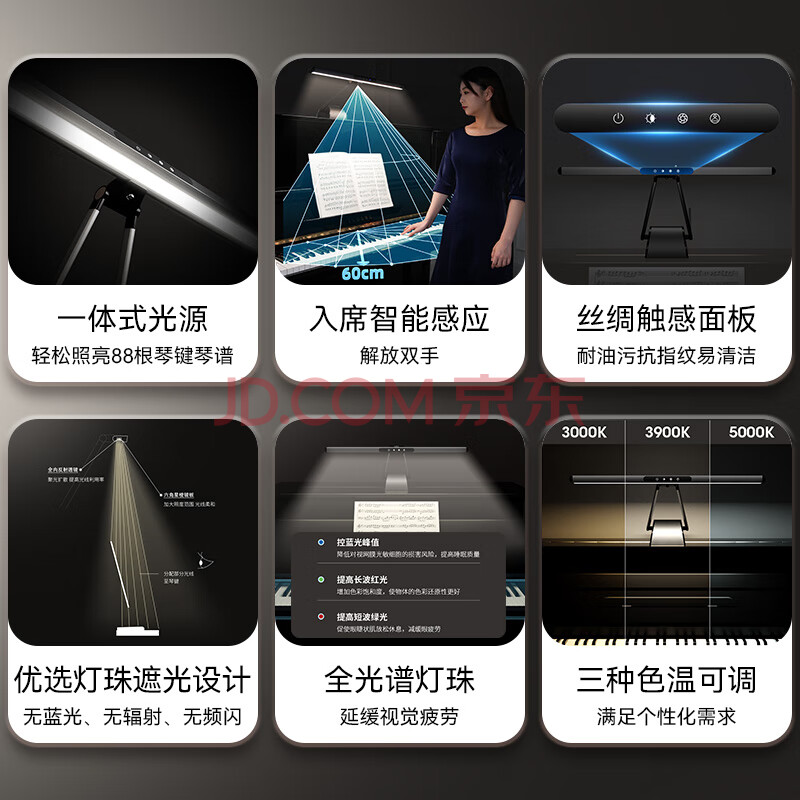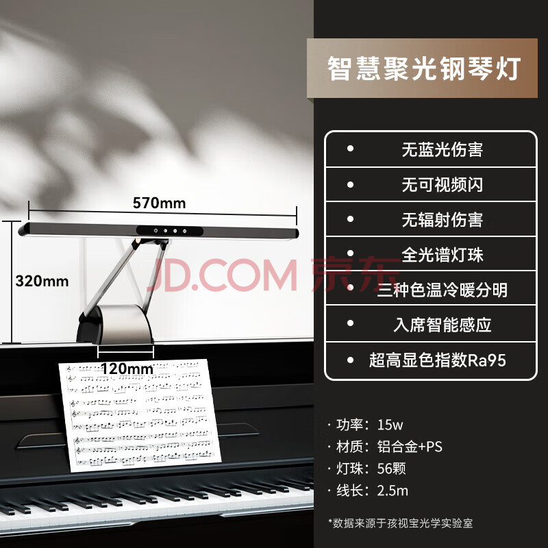商品相册:孩视宝护眼钢琴灯全光谱练琴专用台灯儿童入座感应卧室学习乐谱灯OH26-P第