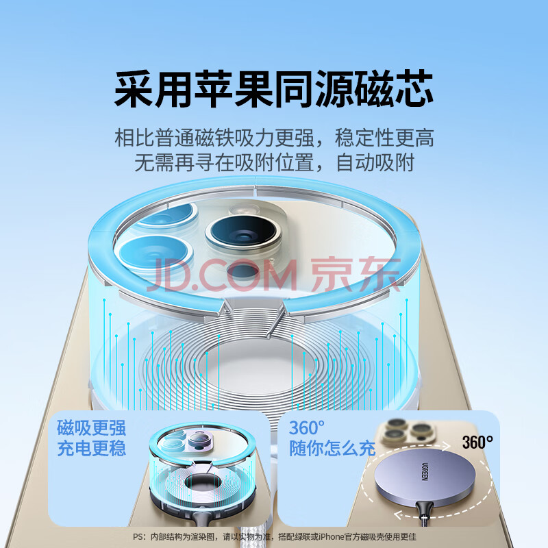 商品相册:绿联【适用iPhone17】无线充电器MagSafe磁吸快充苹果16/15/14/13ProMax/PLUS手机耳机桌面充电板第