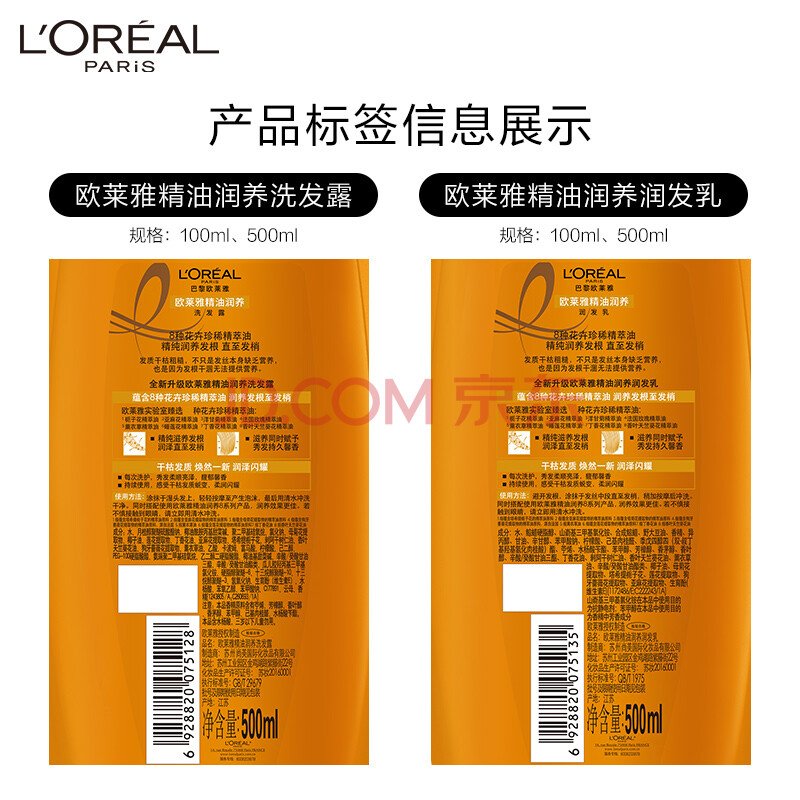商品相册:欧莱雅精油润养洗发水100ml+护发素100ml柔顺留香修护干枯(洗护旅行装)第