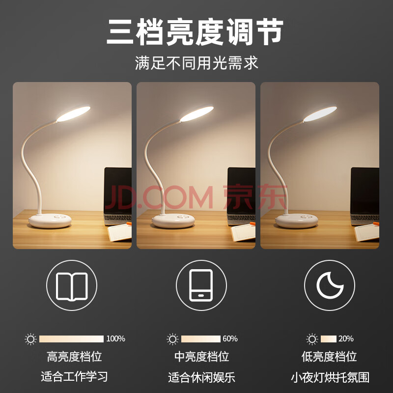 商品相册:好视力usb可充电小台灯儿童大学生宿舍卧室办公室工作学习阅读led书桌灯第