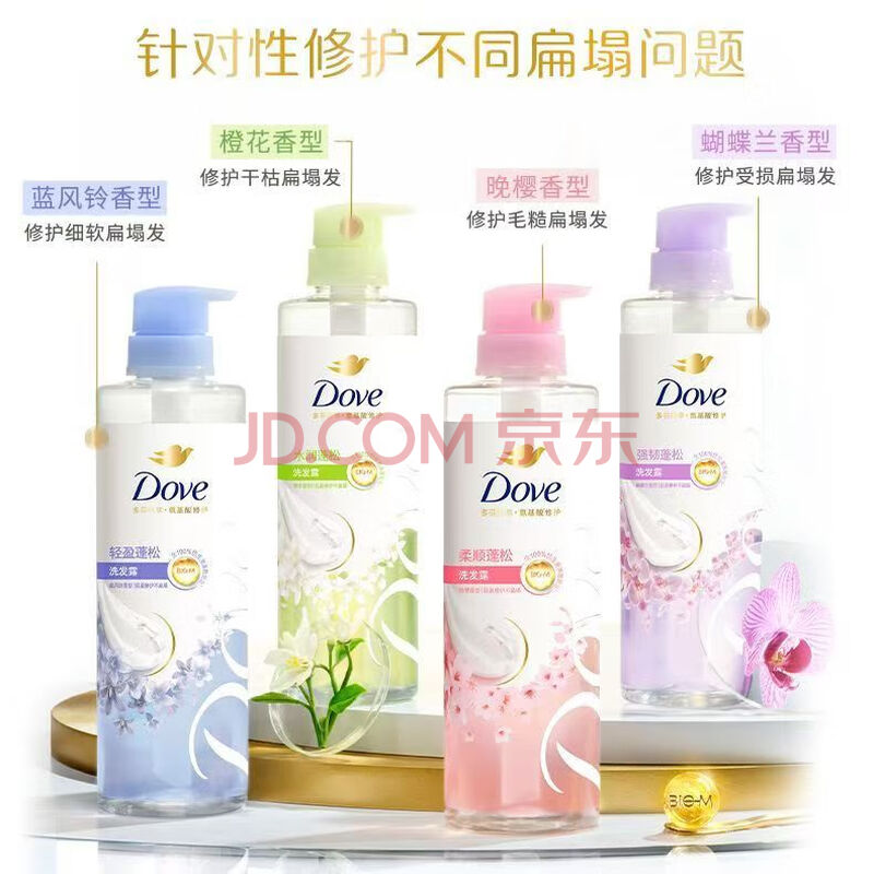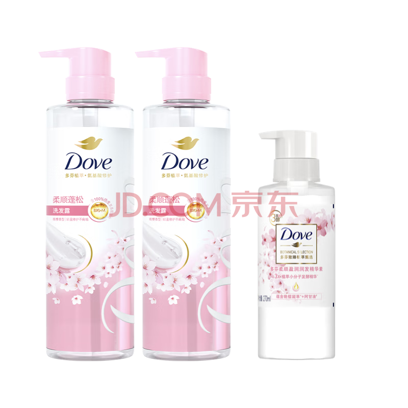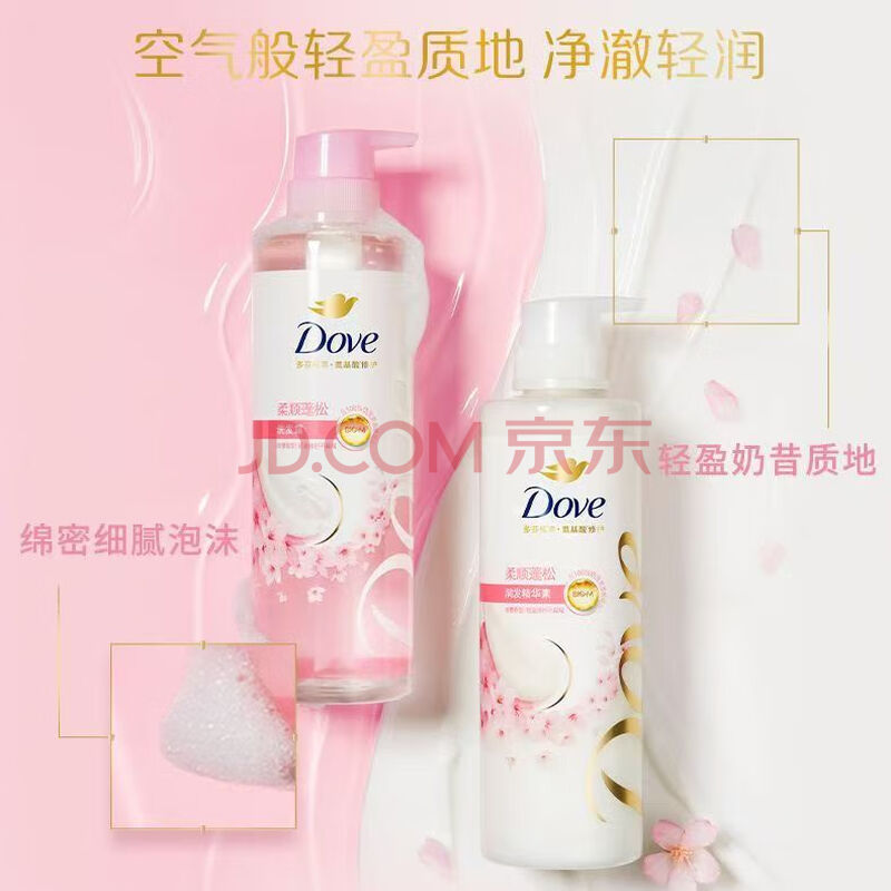 商品相册:多芬(Dove)植萃蓬松氨基酸洗发水470mlx2+护发素270ml樱花 毛躁扁塌发质第
