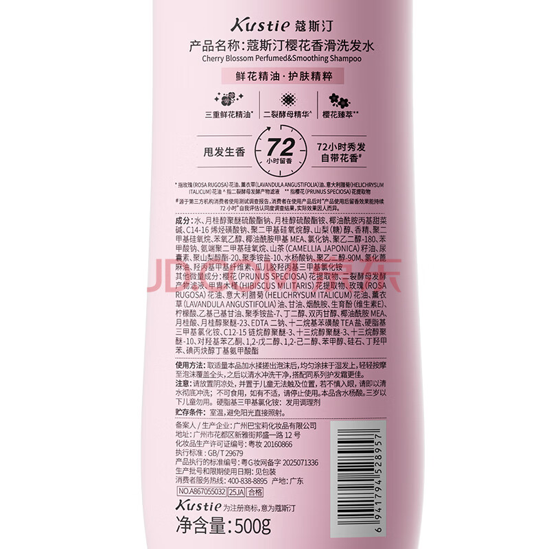 商品相册:蔻斯汀(Kustie)樱花香滑修护洗发水男女500g蓬松头发清爽柔顺强韧氨基酸洗发露第