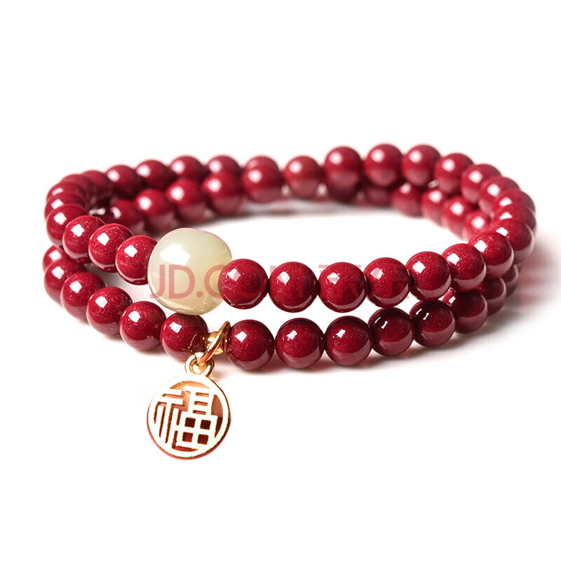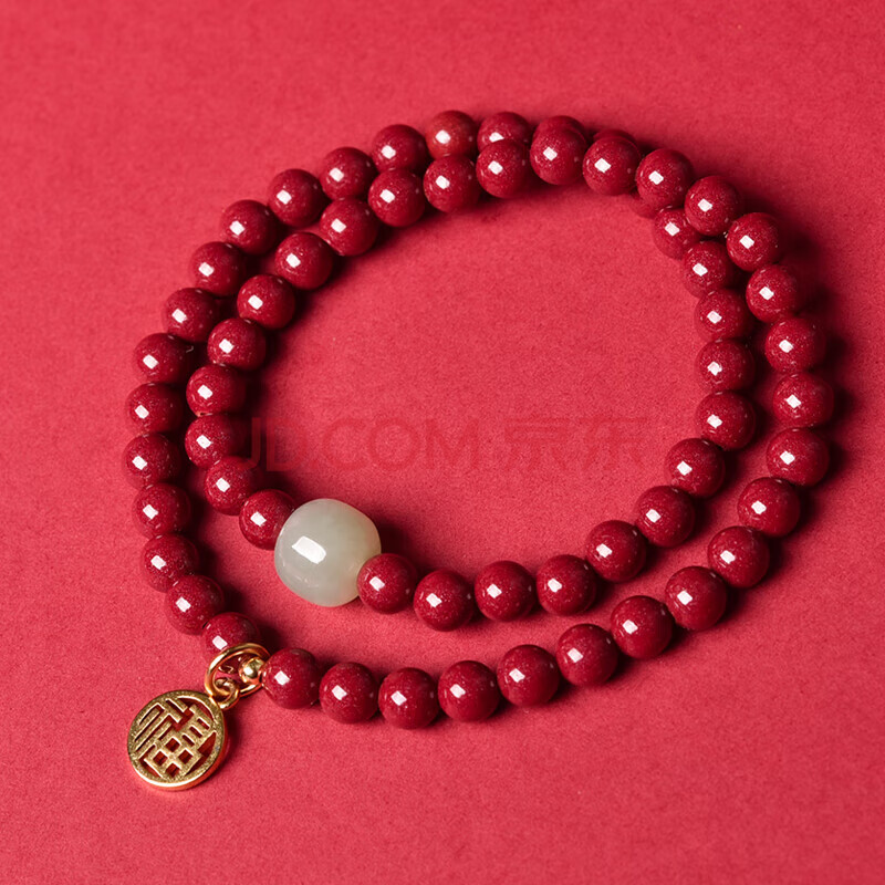 商品相册:灵菲朱砂手链双圈福牌和田玉圆珠手串马年本命年节日生日礼物证书第