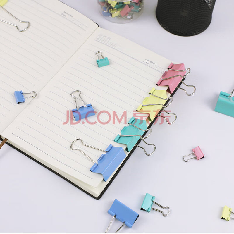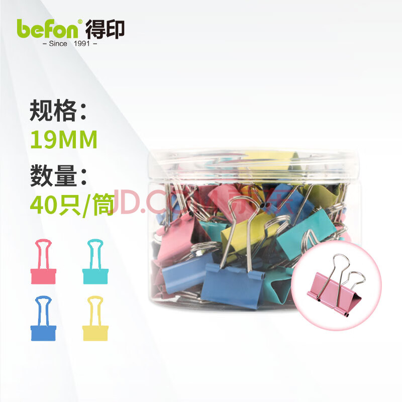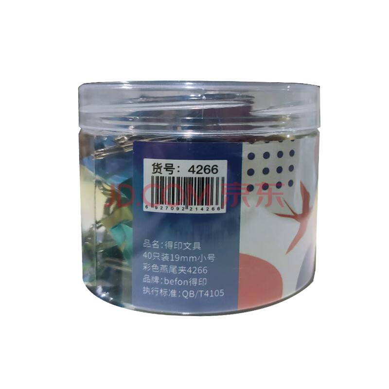 商品相册:得印长尾夹40只19mm小号5#燕尾夹彩色金属铁凤尾小夹子纸票夹资料单据夹子文具办公用品40只/筒 4266第