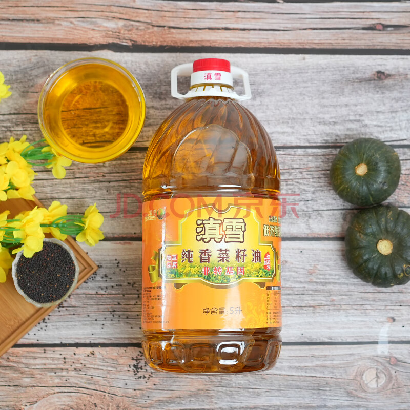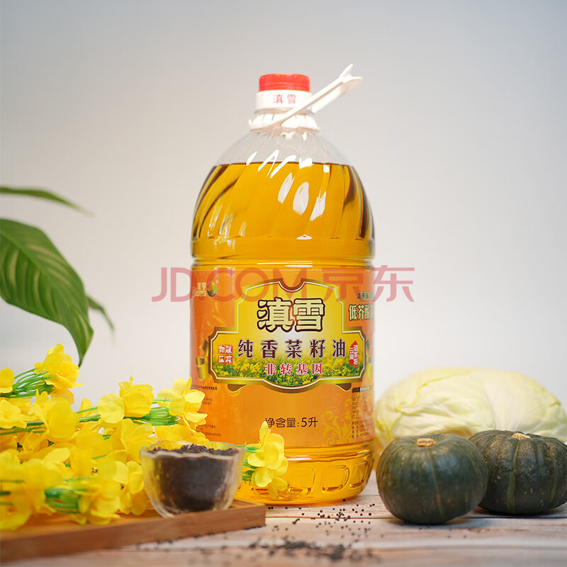 商品相册:滇雪纯香菜籽油5L轻油烟食用油5升装 非转基因油菜籽物理压榨云南高原第