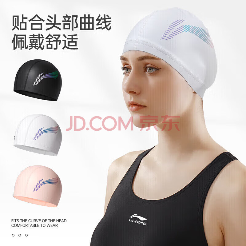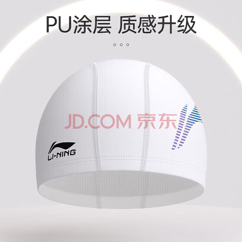 商品相册:李宁 LI-NING 泳帽男女简约游泳帽 PU涂层长发防水泳帽 护耳舒适不勒头 LNMT619-1 白色第