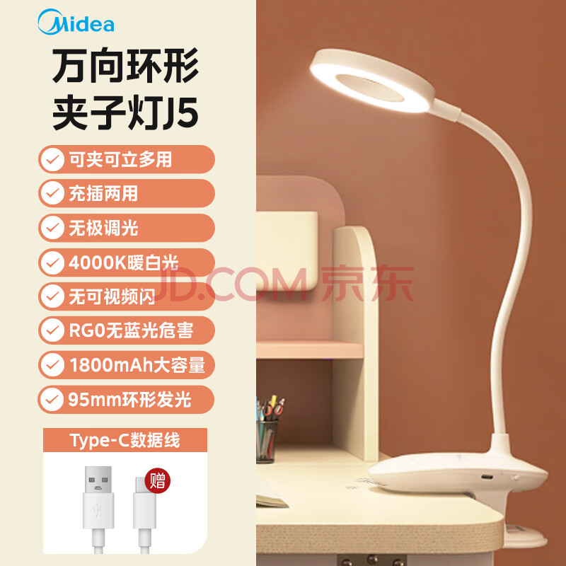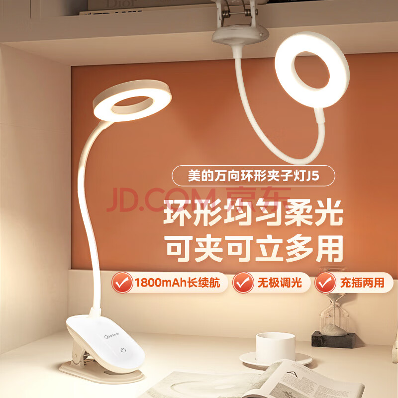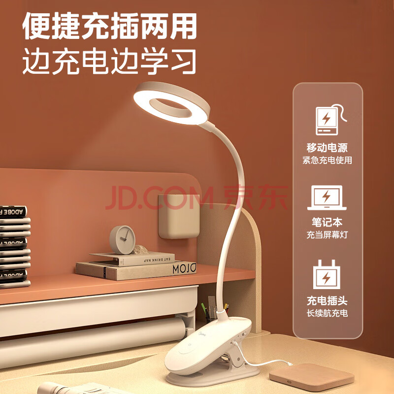 商品相册:美的(Midea)充电款小台灯家用学生学习专用书桌灯宿舍阅读夹子式床头灯第