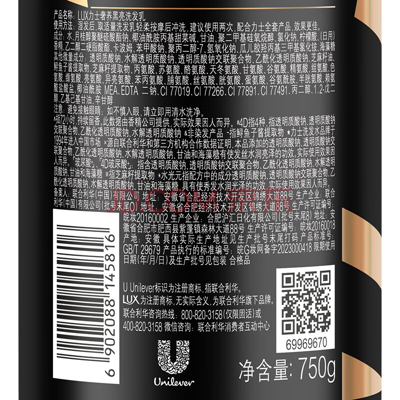 商品相册:力士(LUX)【黑亮留香】鱼子酱洗发水750g 枯黄暗哑发质 黑亮留香第