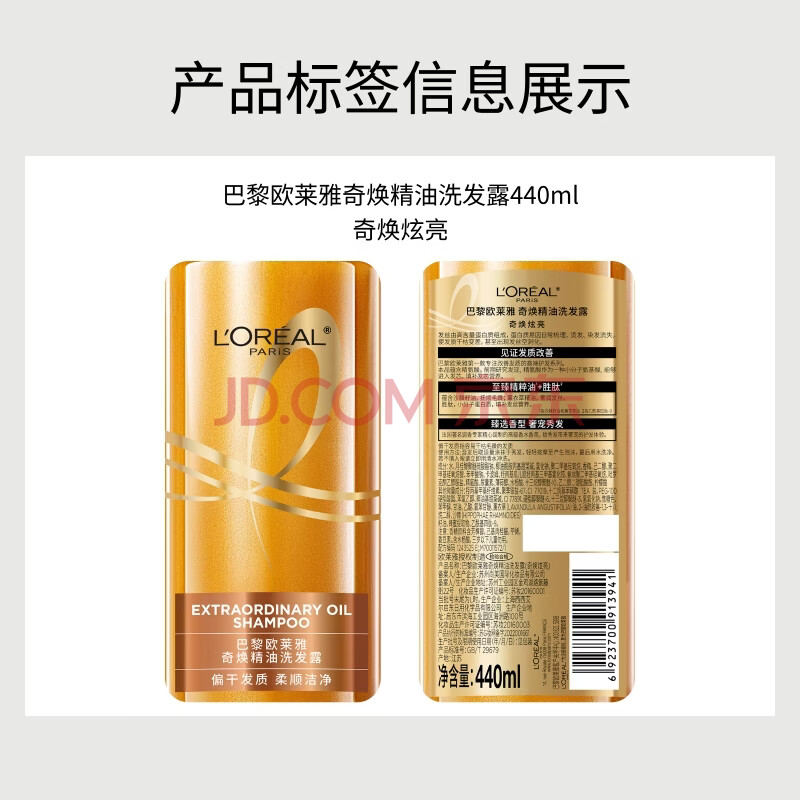 商品相册:欧莱雅奇焕炫亮精油洗发水大金瓶洗发露440ml(适合干枯毛躁发质)第