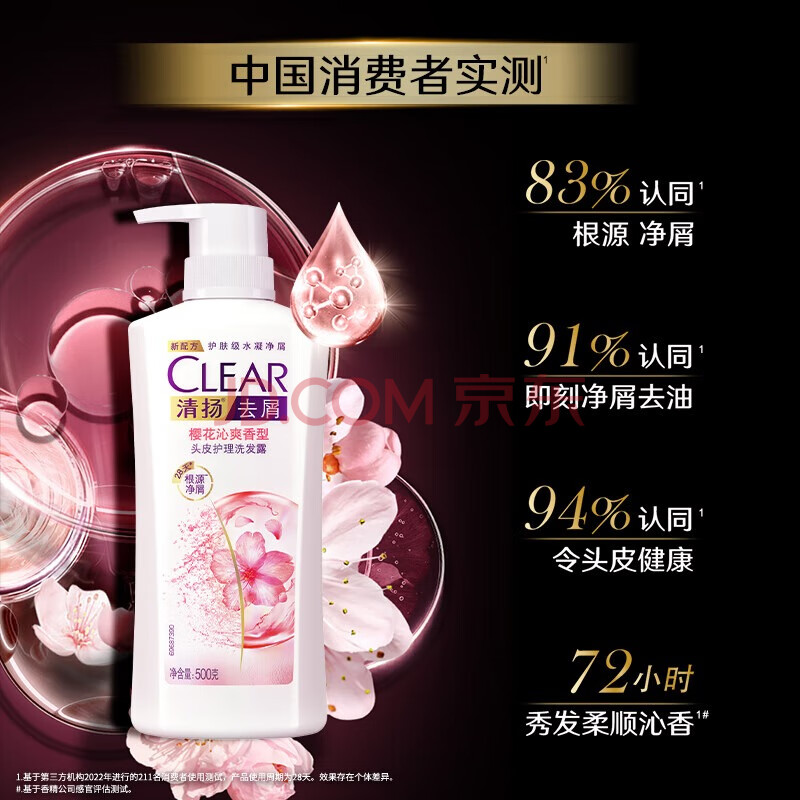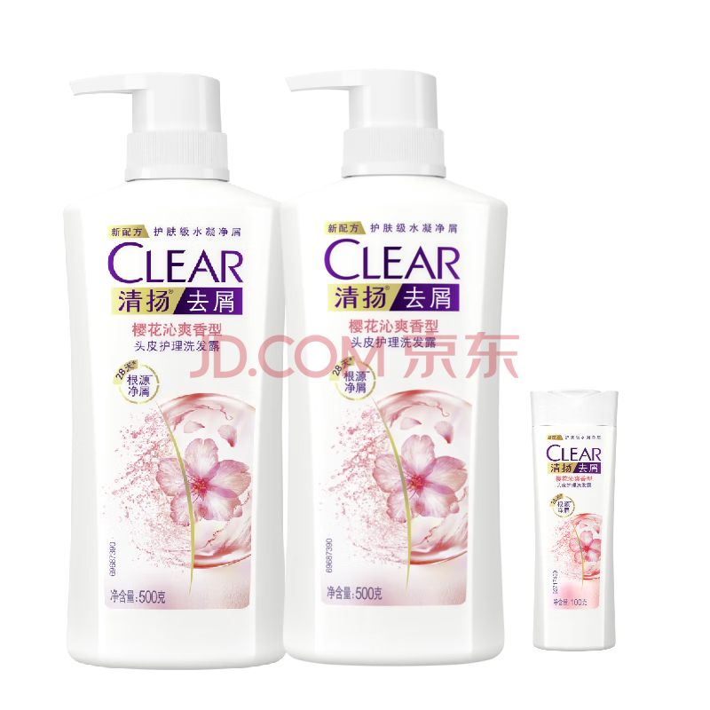 商品相册:清扬女士樱花去屑洗发水500gx2 烟酰胺净屑止痒留香洗头膏 热门商品第