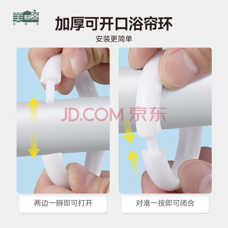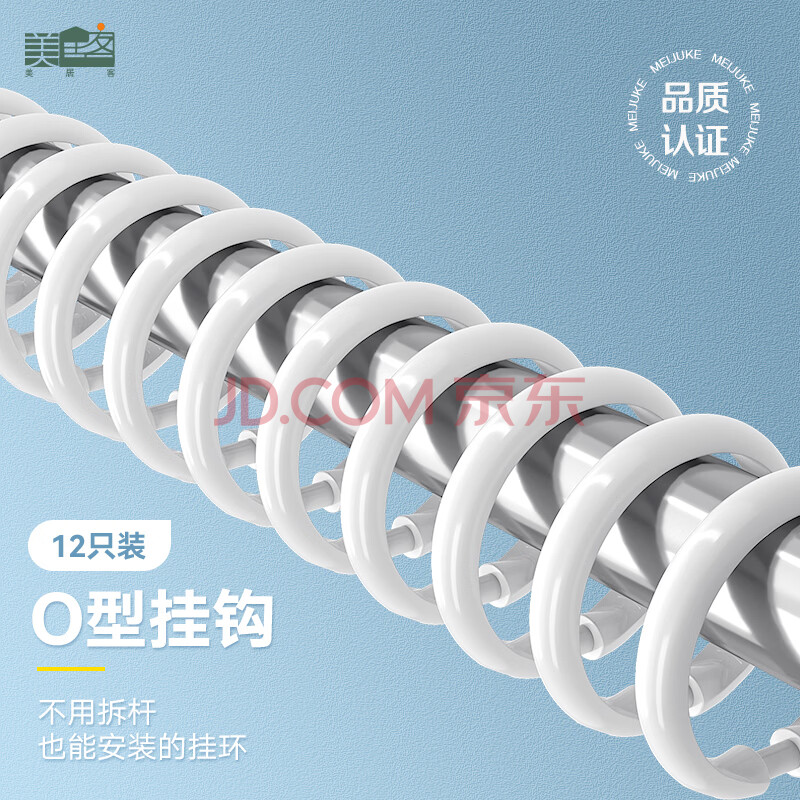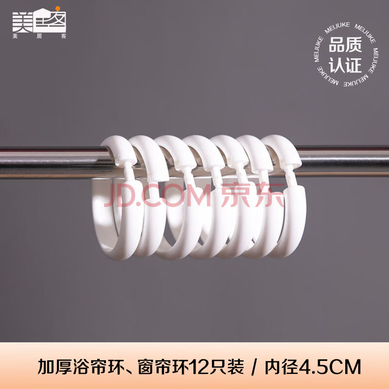 商品相册:美居客 挂钩 免打孔加粗浴帘环 O型窗帘挂钩 挂环 大号 (12只装)第