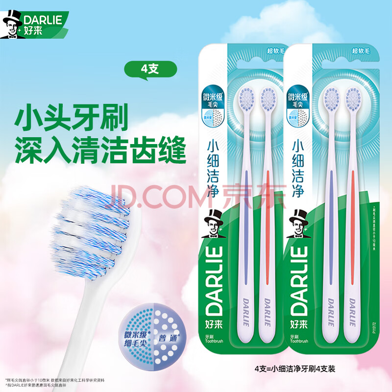 商品相册:DARLIE好来(原黑人)灵动小细头软毛牙刷 4支装 (新旧包装随机) 便携装第
