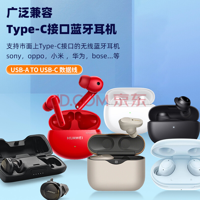 商品相册:trendsetter 蓝牙耳机充电线type-c数据线适用于小米oppo华为vivo荣耀sony红米bose漫步者jbl无线耳机充电器线第