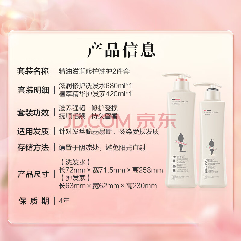 商品相册:阿道夫滋润修护洗护套装 洗发水680ml+护发素420ml 精油香氛洗发露第