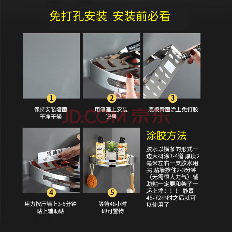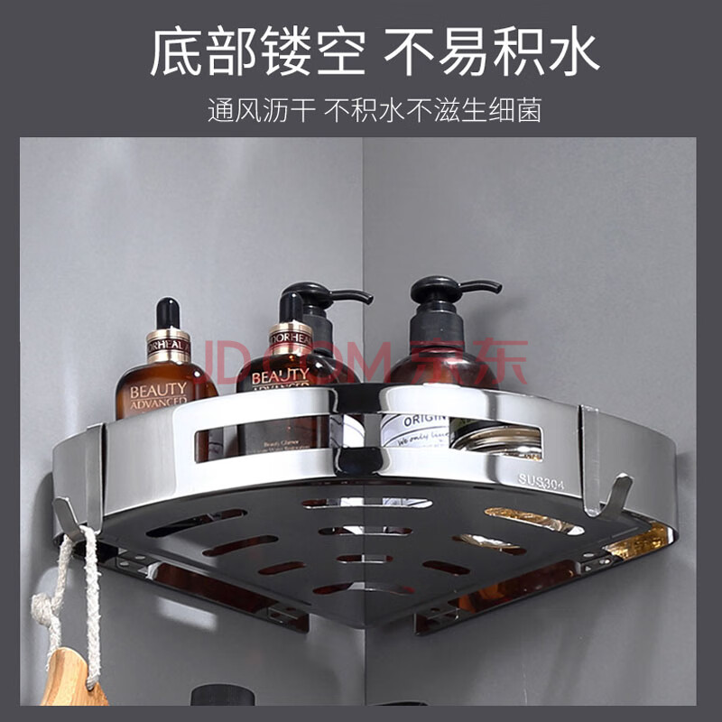 商品相册:馨沛不锈钢浴室置物架免打孔卫生间厕所墙面三角收纳壁挂储物架第