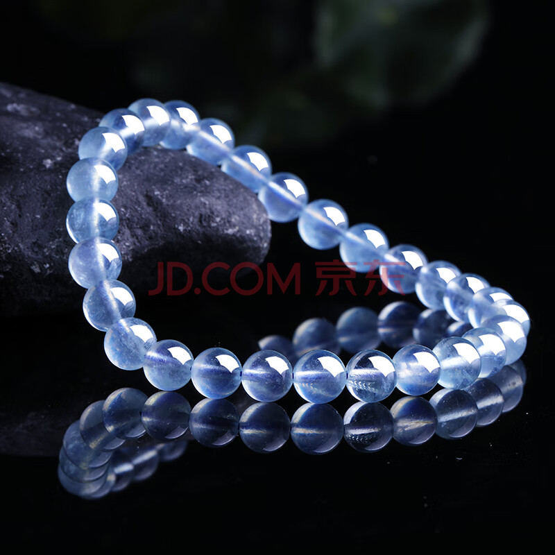 商品相册:石玥珠宝精品6-7mm海蓝宝石手串本命年转运珠水晶手链男女士款礼物第