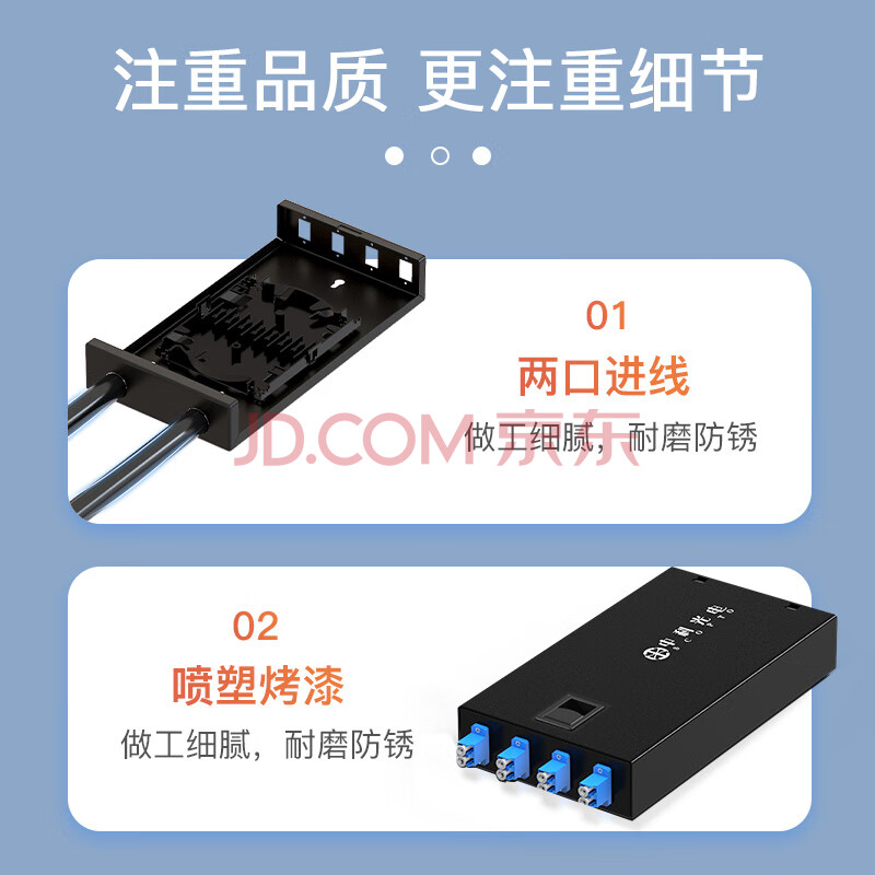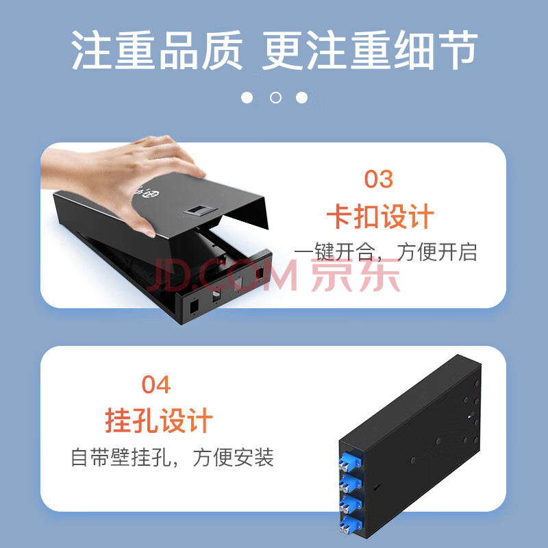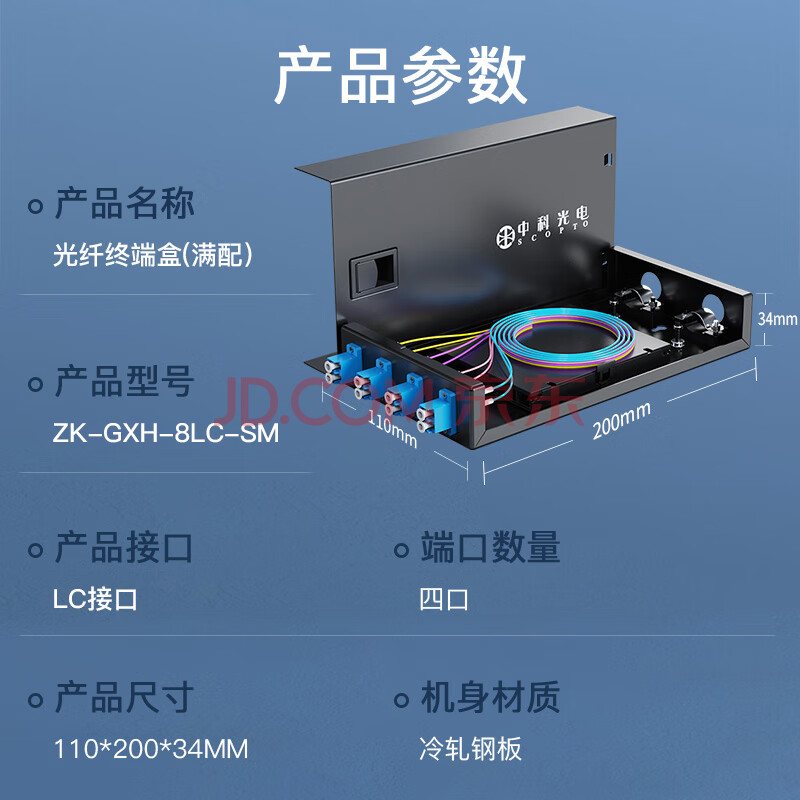 商品相册:中科光电 光纤终端盒4口 8芯光纤熔接盒 光缆接续盒 接线熔纤盒 LC单模满配尾纤法兰 壁挂式 ZK-GXH-8LC-SM第