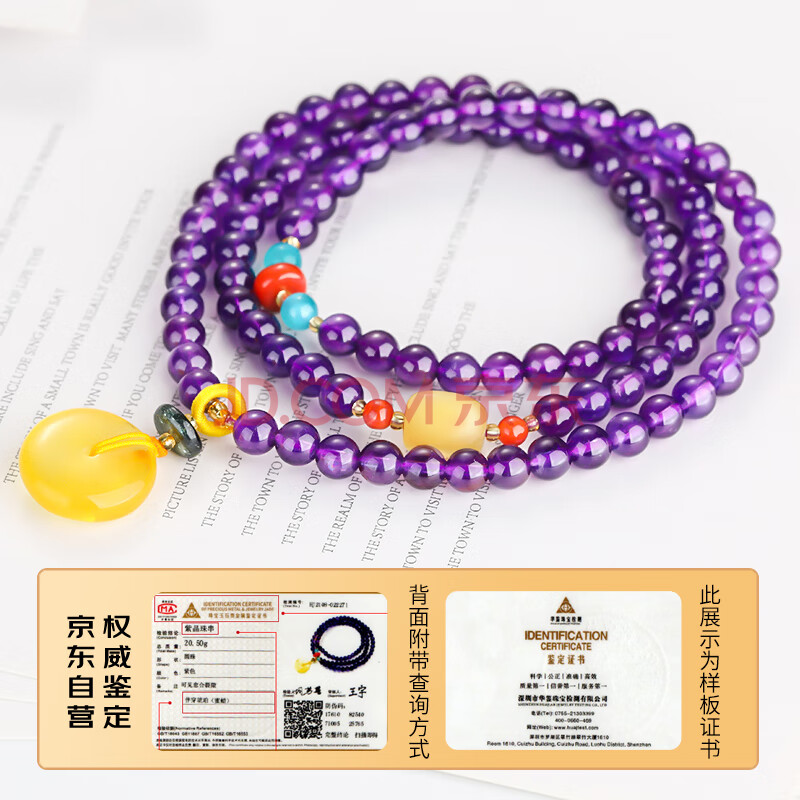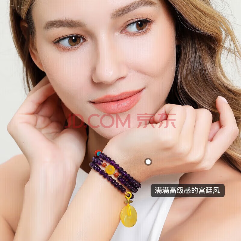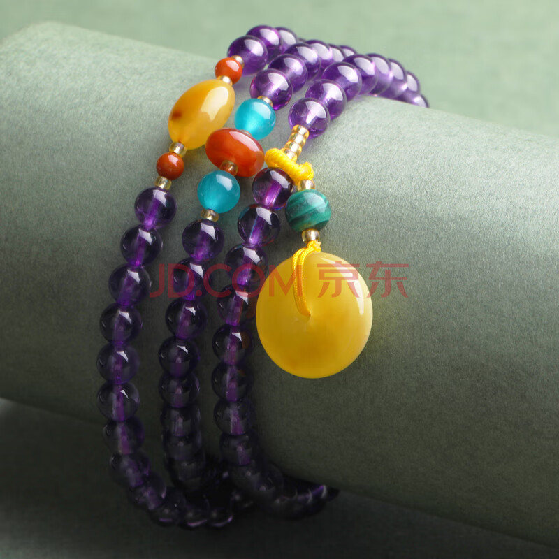 商品相册:石玥珠宝精品5mm天然紫水晶手链蜜蜡平安扣本命年九紫离火手串男女士款第