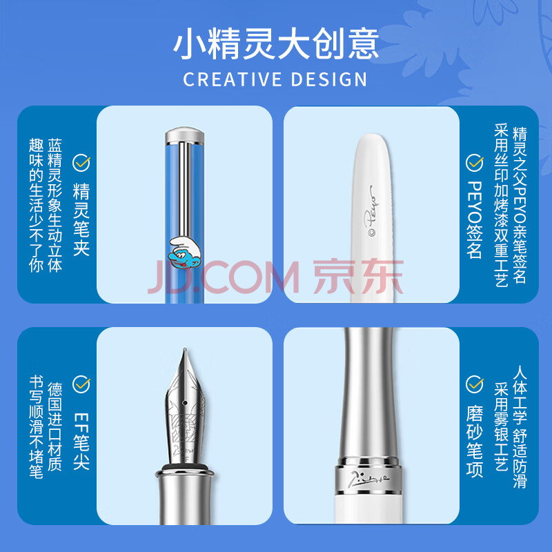 商品相册:毕加索(pimio)蓝精灵联名款钢笔礼盒 经典套装高端成人开学礼物男女学生练字签字笔商务办公礼品935第
