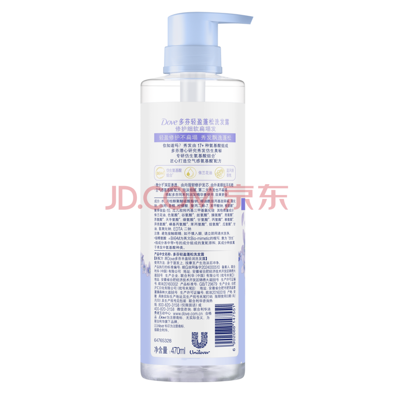 商品相册:多芬(Dove)【轻盈蓬松】无硅油氨基酸洗发水470ml蓝风铃 细软扁塌发质第