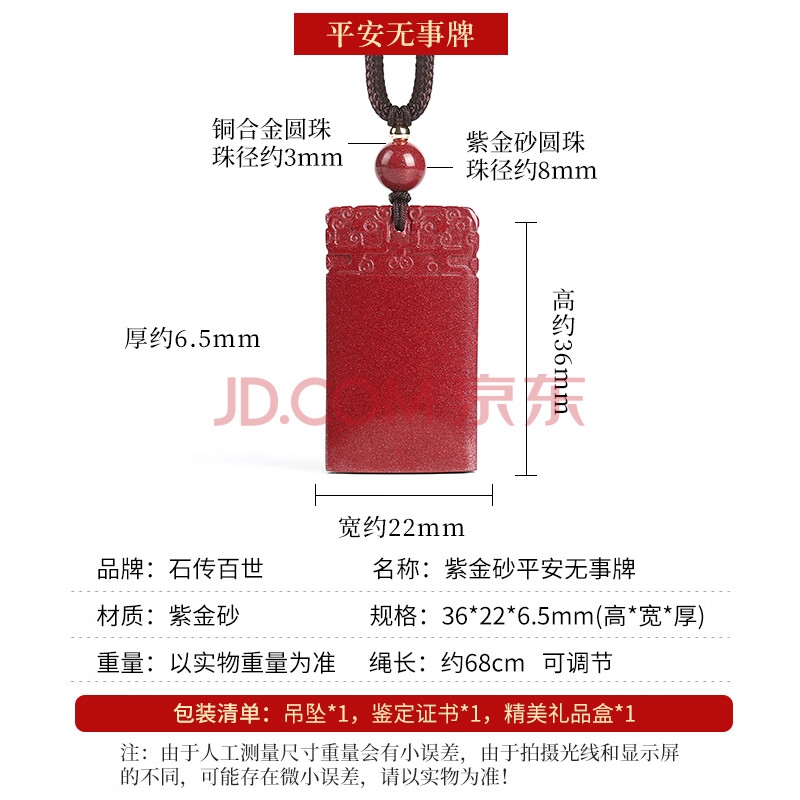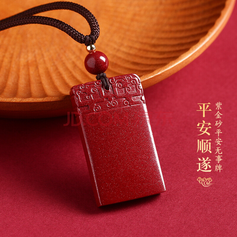 商品相册:石传百世朱砂吊坠紫金砂平安无事牌挂件项链男女本命年护身符生日礼物第
