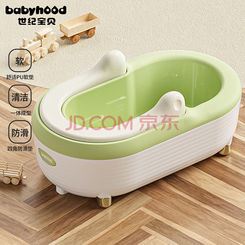 商品相册:世纪宝贝(babyhood)婴儿洗屁屁神器 宝宝坐浴盆洗屁股盆儿童洗PP盆加厚PU坐垫 浅荷绿第